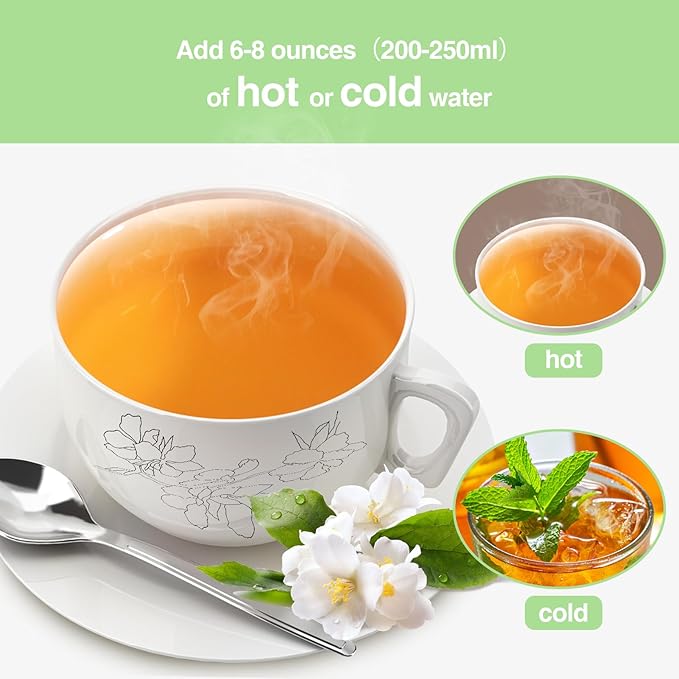 - Brewing Directions : Add 6-8 ounces (200-250ml) of hot water or cold water and stir gently to completely dissolve the tea powder. Adjust the amount of water/packing according to your preferred strength for a more suitable flavor